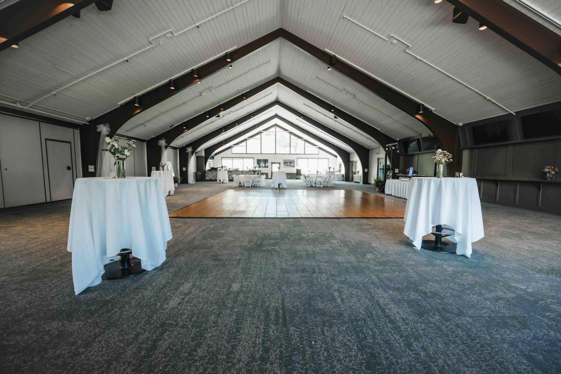 This beautiful Nordic-inspired space is located in the Day Lodge at The Highlands. The spacious room can accommodate large wedding parties, and features gorgeous views of the mountain, runs, and chair lifts